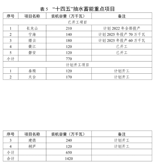 有序發(fā)展抽水蓄能電站。積極推進長龍山、寧海、縉云、衢江、磐安等抽水蓄能開工項目的建設(shè),穩(wěn)妥開展泰順、天臺等抽水蓄能電站項目前期工作,適時啟動建德、桐廬站點的前期工作。結(jié)合現(xiàn)有站點,合理規(guī)劃布局,積極推動新一輪抽水蓄能電站選點工作。加強抽水蓄能電站建設(shè)管理體制、電價機制等研究。"十四五"期間,全省抽水蓄能電站力爭新增裝機容量 340 萬千瓦,累計裝機容量達到798 萬千瓦。