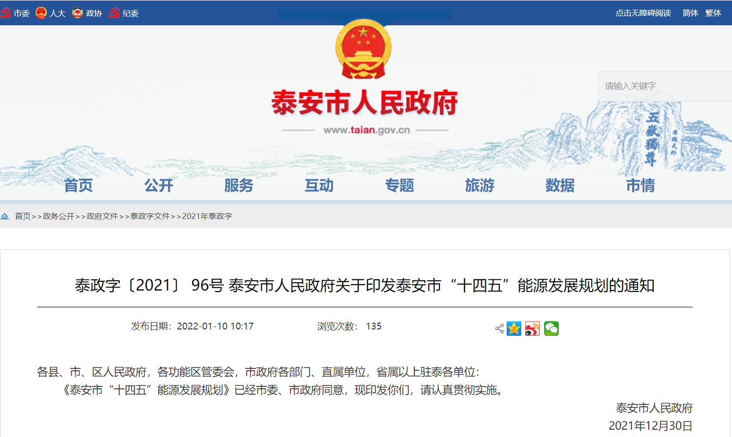 文章來源:地大熱能 發布作者:山東省泰安市人民政府 發表時間:2022-01-12 09:06:56瀏覽次數:3535