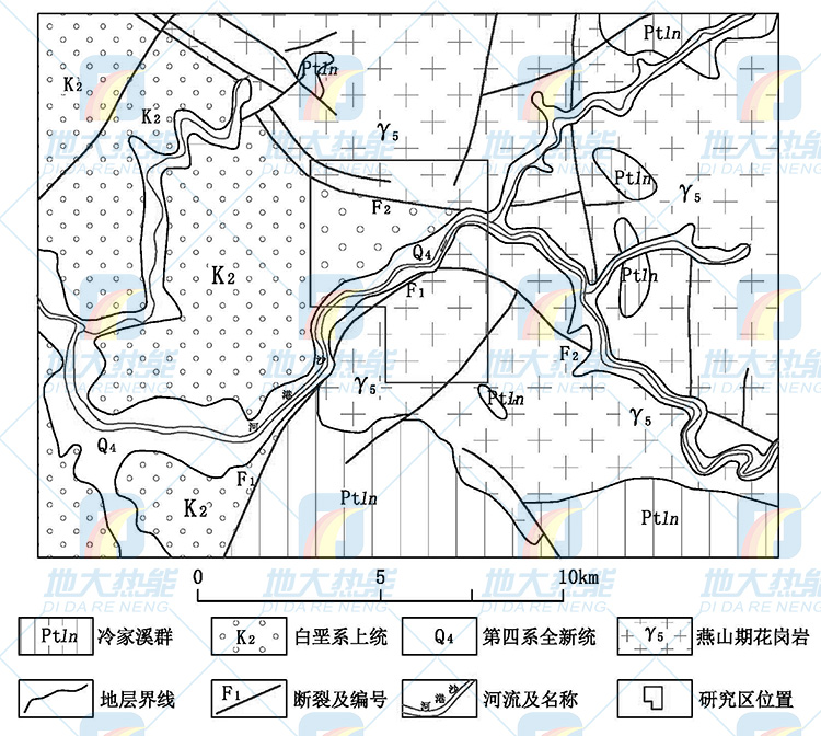 地下水在各類地層的徑流及排泄方式差異明顯[3],構造裂隙水是研究區內地下熱水的主要存在形式,其補徑排均受構造控制,主要接受大氣降水補給,順構造裂隙發育帶徑流運移,并在向深部運移過程中逐步進行熱力交換,富集形成熱田,在構造發育部位上升排泄。
