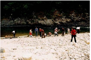 江西熱水洲溫泉風(fēng)景熱水洲溫泉長100-150米,寬10-30米,水溫度64℃以上,日流量2000噸,沿河堤、河床呈泉群帶狀分布。溫泉主要出露于河床漫灘上,由深部斷裂帶熱水上升而成,儲存、運移于河床卵石層中。